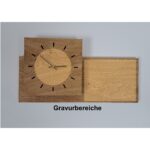 Der Bereich innerhalb des Ziffernblattes sowie in der Rückwand daneben können individuell mittels Lasergravur gestaltet werden.
